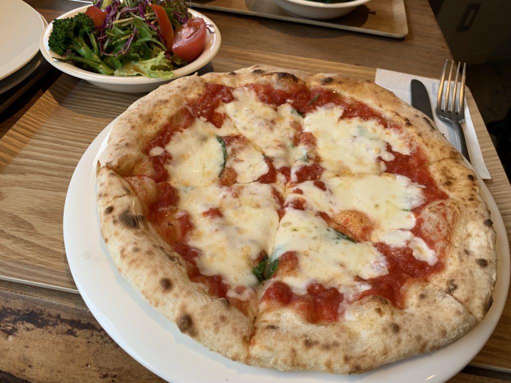 ちなみに妻は、マルゲリータを注文しました。「一人で食べるのにちょうど良い大きさ」とありました。