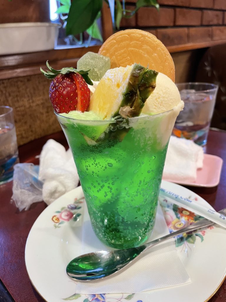 喫茶店といえばコーヒー!と思ったのですが、ここはもう一つの定番「クリームソーダ」を頼みました。